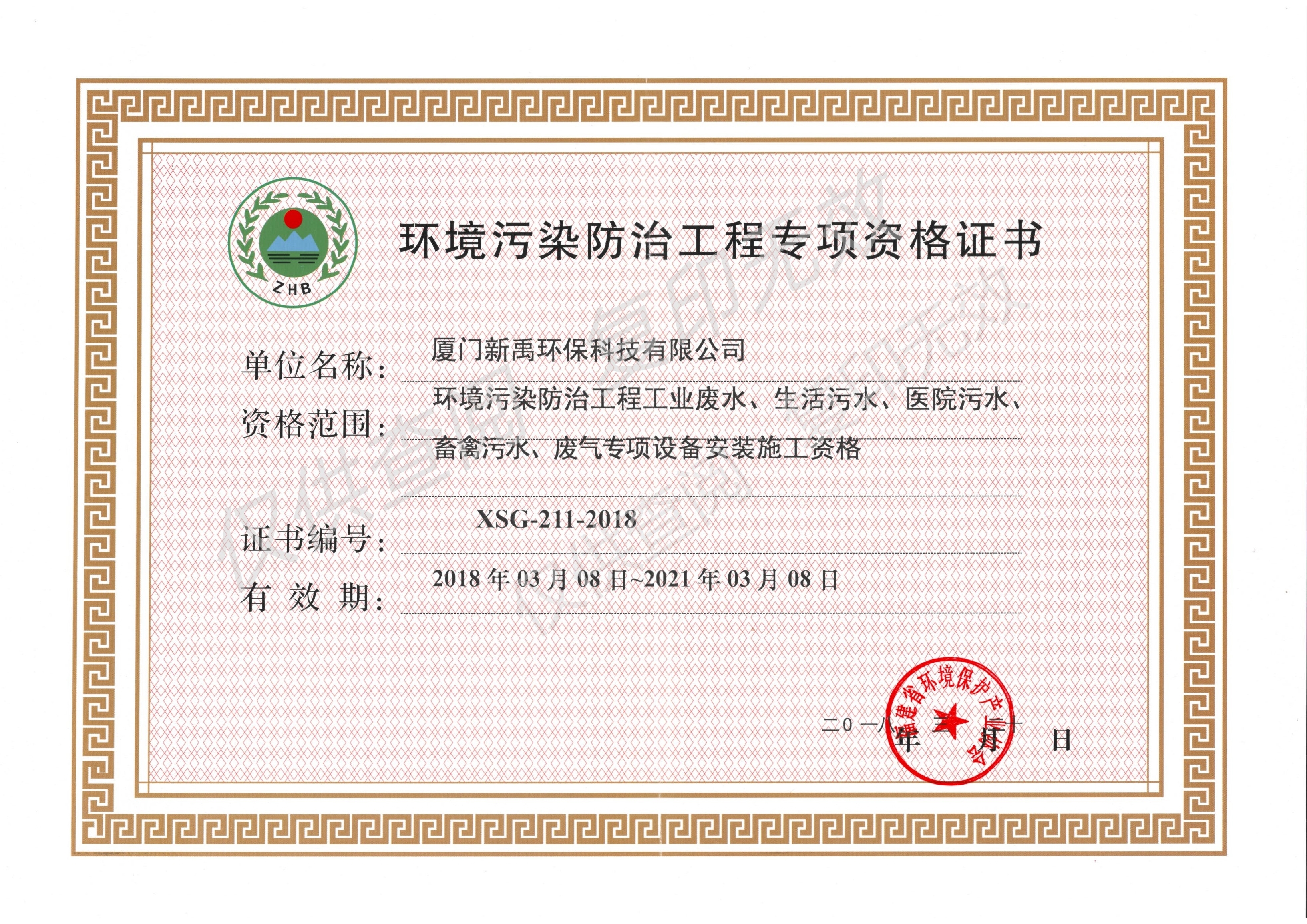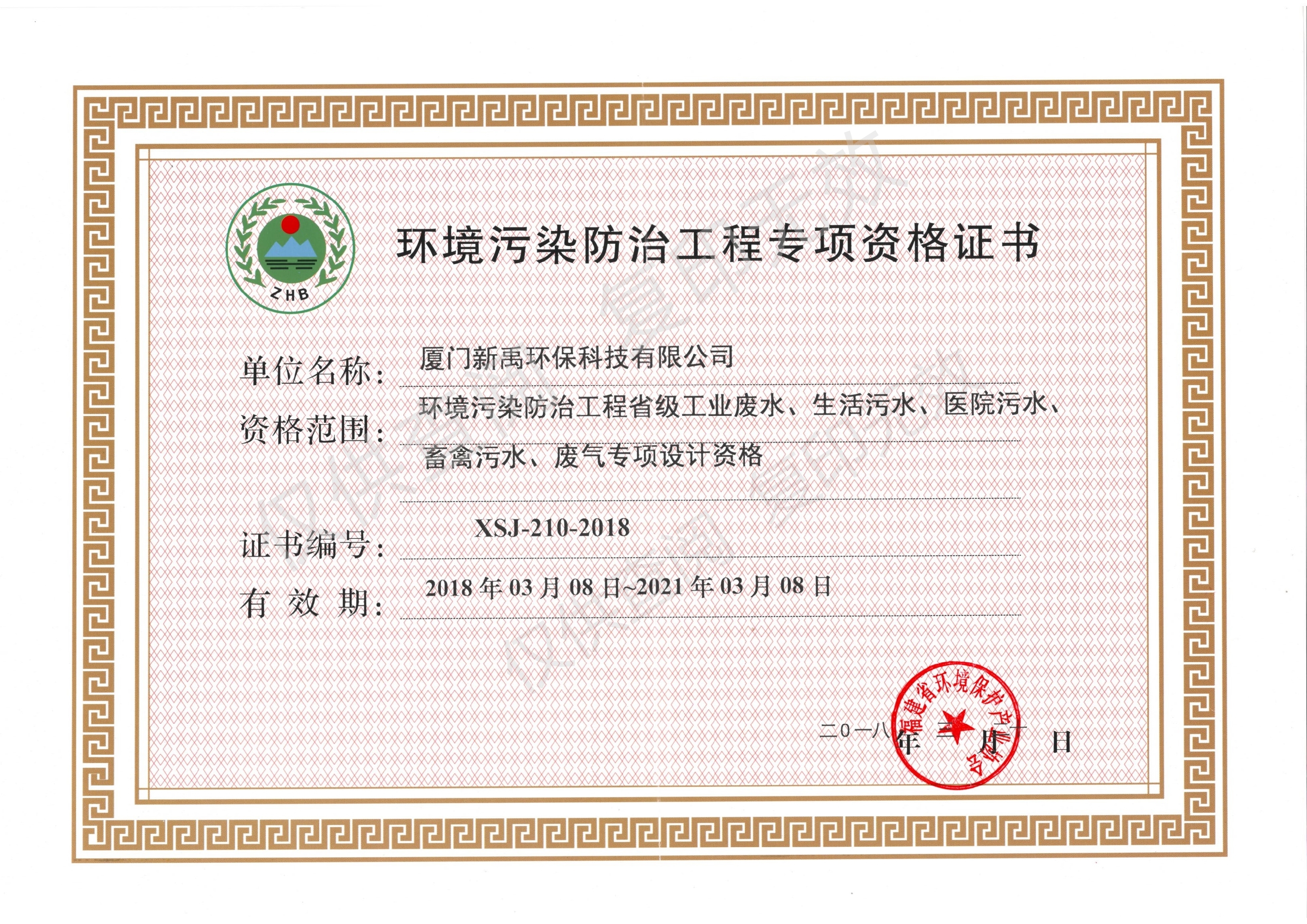 環(huán)境污染防治工程專項資格證書