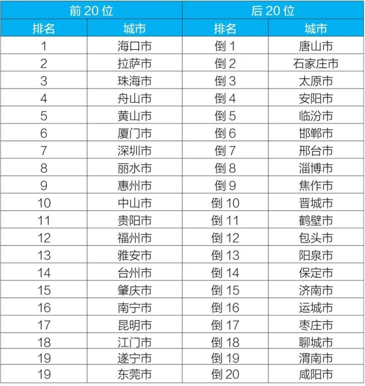 2020年10月168個重點(diǎn)城市排名前20位和后20位城市名單